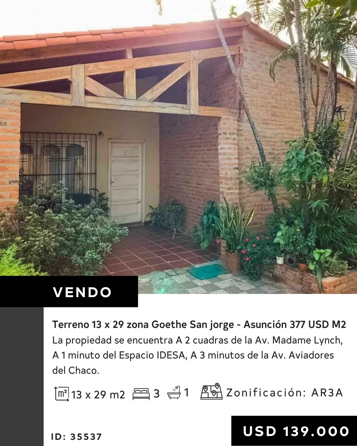 Vendo Terreno 13 x 29 zona Goethe San jorge - Asunción 377 USD M2