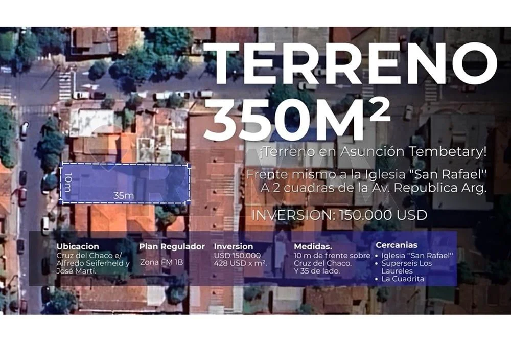 Terreno de 350m² (10x35m) sobre la calle Cruz del Chaco entre Alfredo Seiferheld y José Martí, con una ubicación inmejorable en un barrio Residencial.
