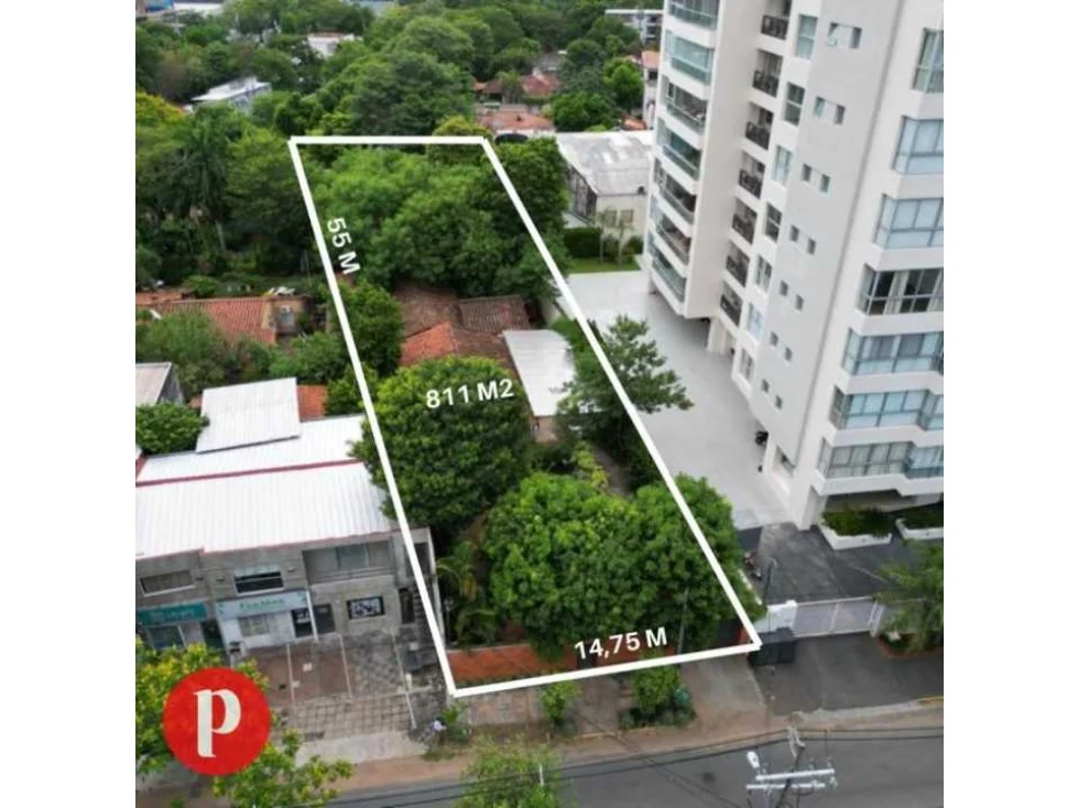 Gran terreno en venta con 811 m2. En pleno barrio residencial Villa Morra. Ubicado a una cuadra de Avda. España y dos de Sacramento. Ideal para edificio de departamentos u oficinas.