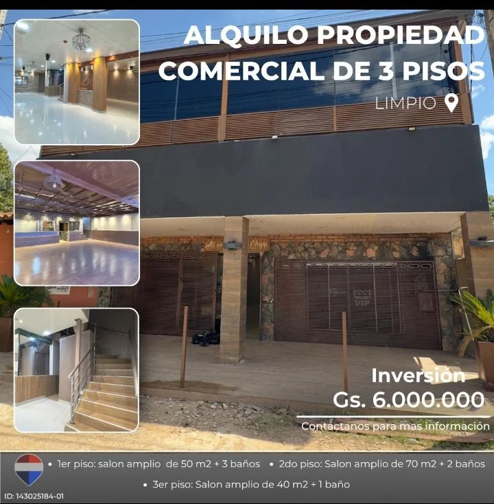 *?✨ Alquilo local comercial de 3 pisos en Limpio (zona comercial)*