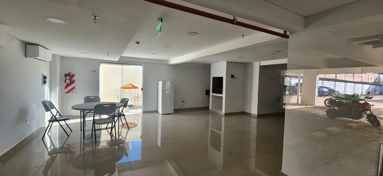 *ALQUILER DE DEPARTAMENTO*Complejo Residencial Santa María*CARACTERISTICAS*- 2 dormitorios, uno en suite.- Placares en las habitaciones.- Baño unifamiliar y social.- Cocina equipada con muebles y campana.- Living comedor.- Aires acondicionados en todos los ambientes.- Balcón con parrilla.- 1 Cochera 45.- Piso 7*SUPERFICIE:* 65m2 *AMENITIES*- Ascensor.- Piscina.- Gimnasio.- Salón Climatizado para eventos- Quincho con parrilla.- Área de juegos para niños.*UBICACIÓN:* https://maps.app.goo.gl/aB7mmCkwjj6asHYd7 *PRECIO:* Gs *** (IVA y Expensas Incluidas)REF. 703.