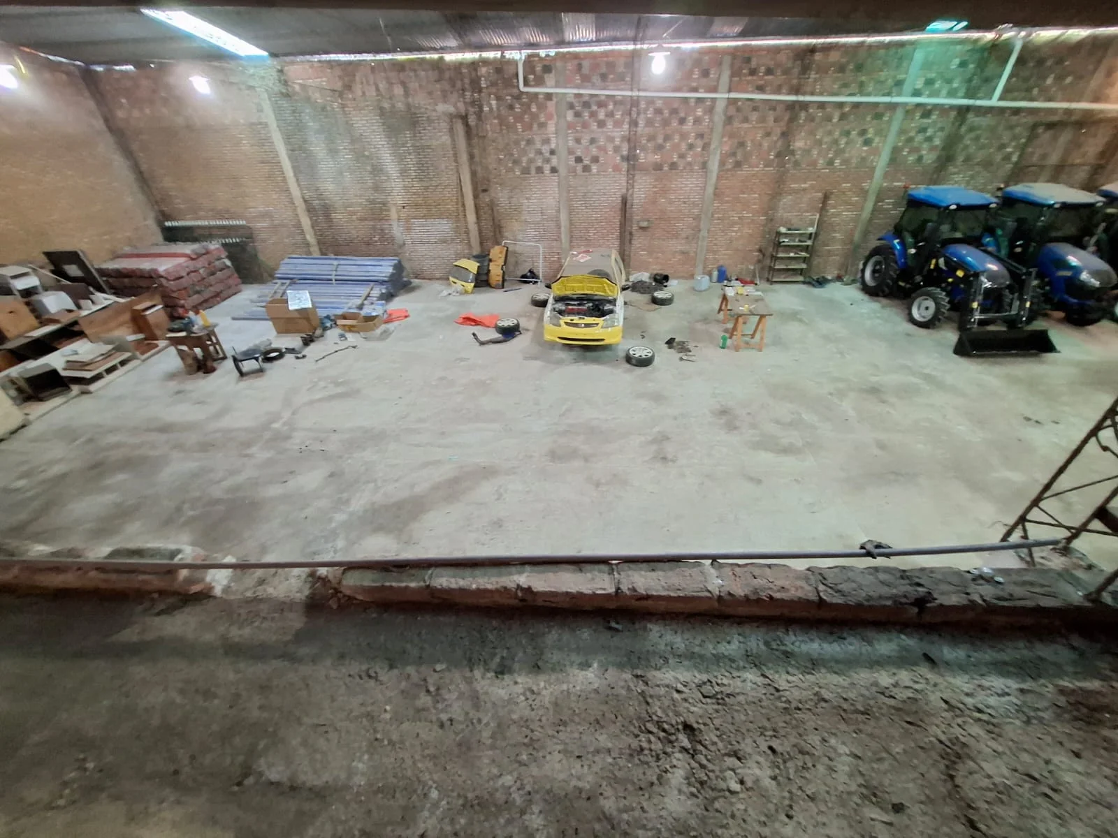 Depósito sobre calle empedrada, completamente cubierto