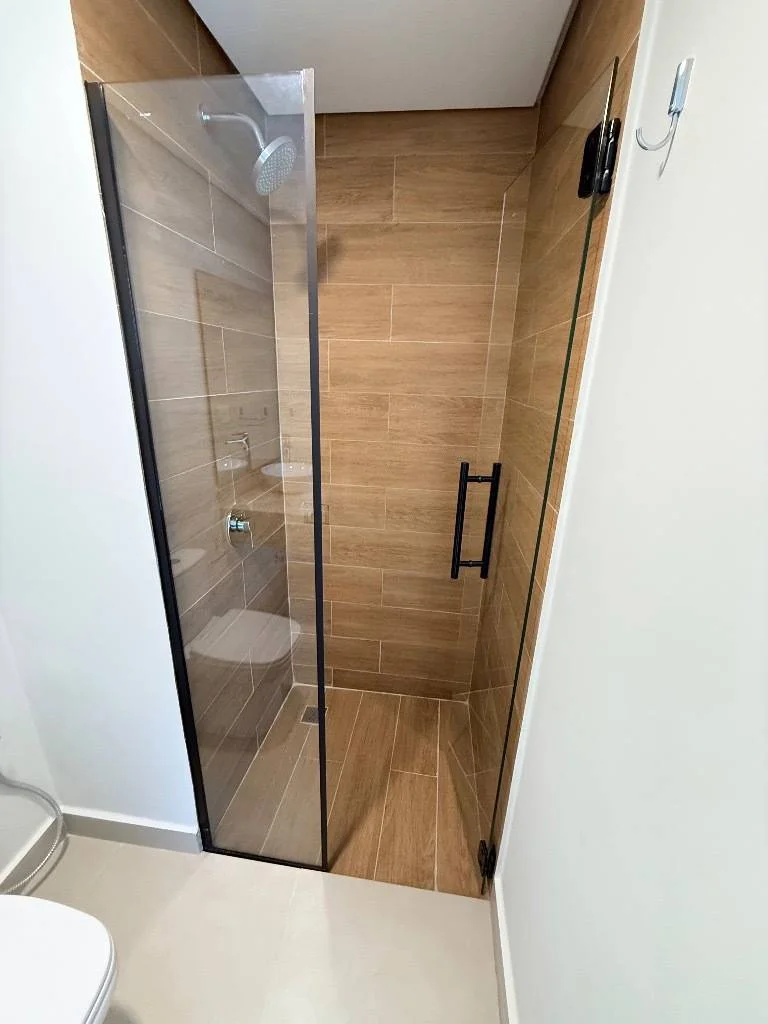 Baño con mampara y espejo