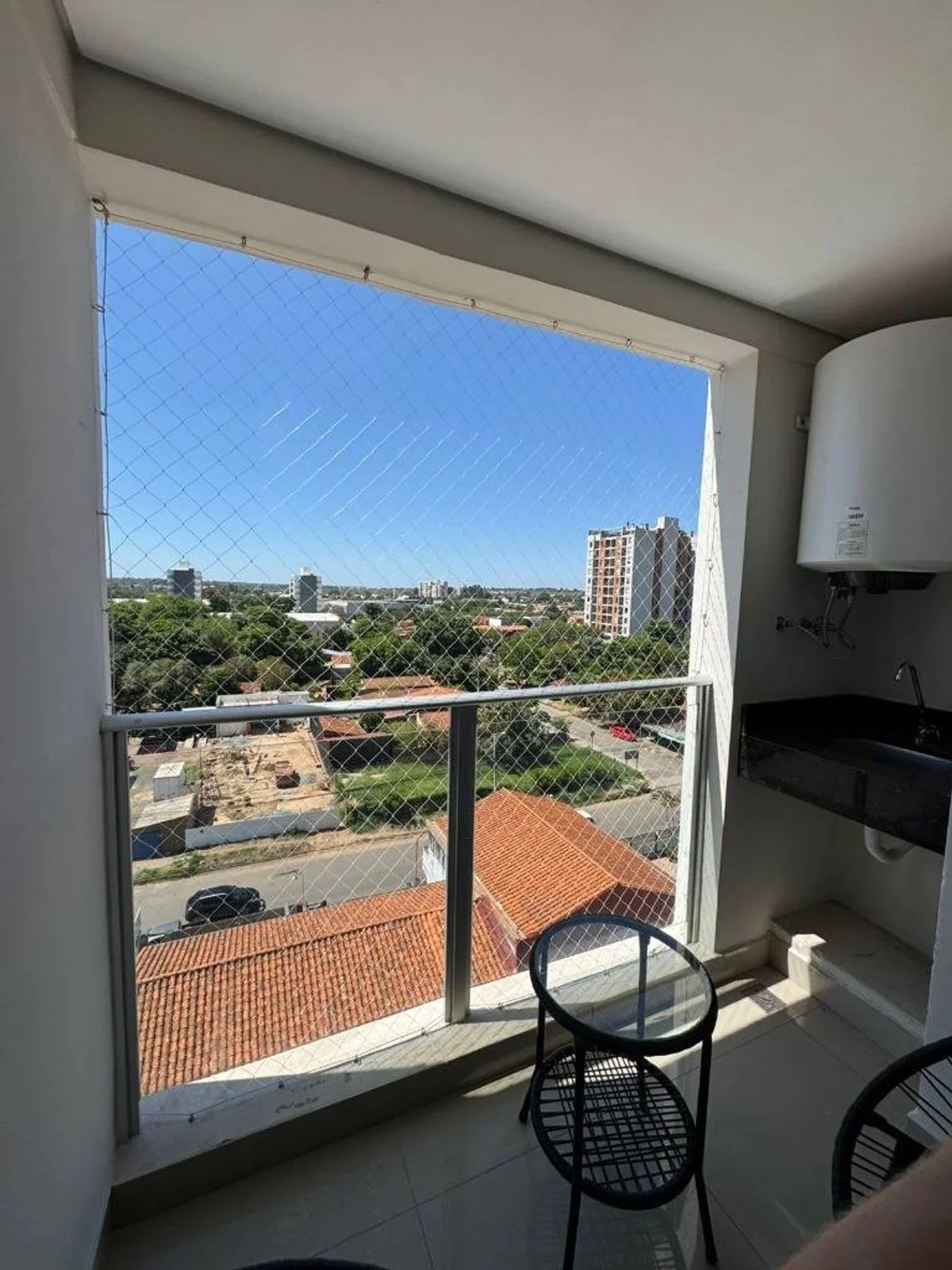 Balcón con parrilla.