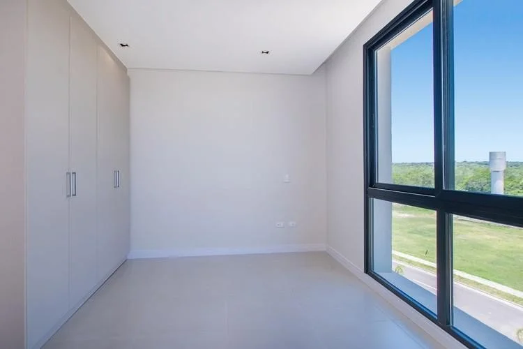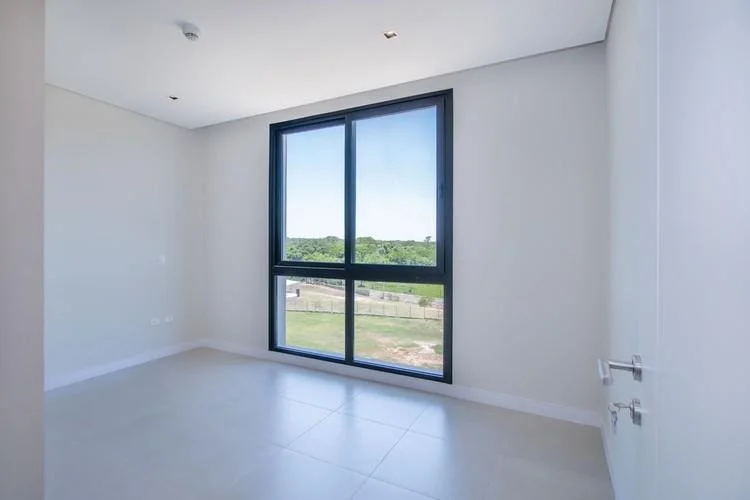 Ubicación privilegiada a solo dos minutos del aeropuerto y quince minutos del eje corporativo. Con 112.79 metros cuadrados propios y un balcón de 18.87 metros cuadrados semicubiertos, disfrutarás de impresionantes vistas a la laguna cristalina y las áreas verdes del complejo. El departamento cuenta con una habitación en suite y una segunda habitación con baño compartido. La sala y el comedor están integrados a una moderna cocina, además de disponer de un área de lavadero y un espacioso balcón con parrilla. La propiedad incluye dos cocheras y una baulera.