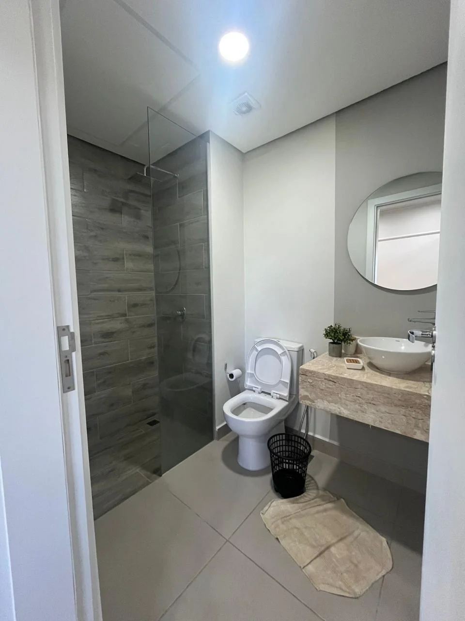 Baño: Moderno, con box (mampara) instalado, espejo.