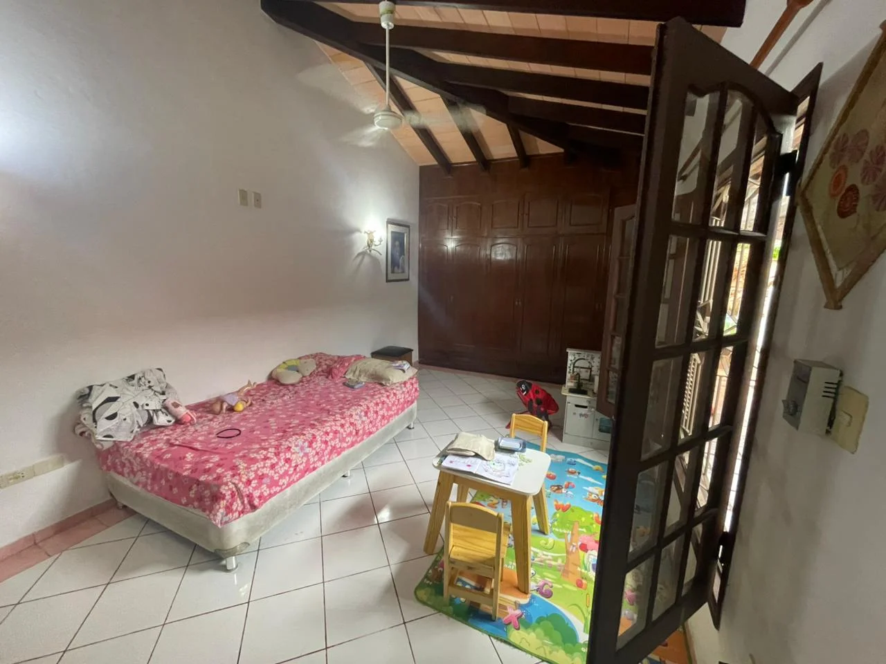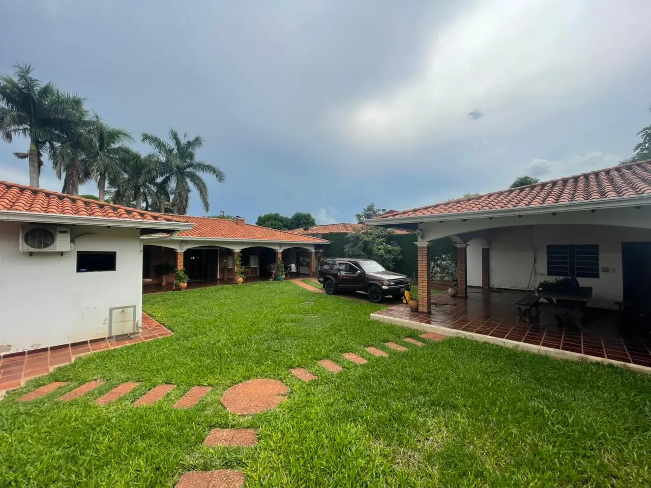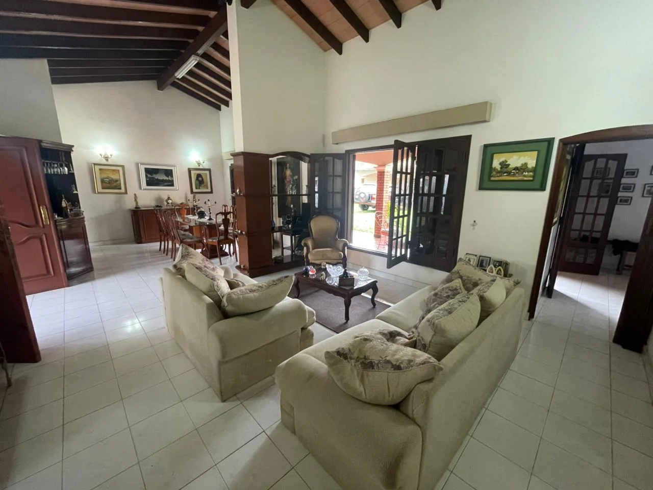 La propiedad se destaca por su imponente frente con palmeras adultas, amplios espacios interiores, techos altos y áreas sociales ideales para disfrutar en familia.