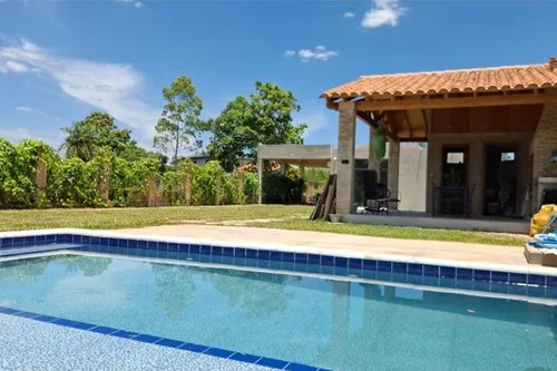 ALQUILO HERMOSA CASA en Areguá Barrio Cerrado Costa Lago Cuenta con : Patio Piscina Garaje techado Sala con aire acondicionado, comedor, cocina 3 Habitaciones (2 con aire acondicionado) 1 Sanitario con termocalefón 1 depósito Tanque de Agua Guardia de seguridad en el Barrio 24 hs El barrio cerrado cuenta con Canchas deportivas y área de juegos para niños, además de aparatos para realizar ejercicios al aire libre. Limita al fondo por el lago Ypacaraí, tiene una playa, abundante sombra y vista maravillosa. En muy buena condición, esta casa de campo ofrece el equilibrio ideal entre confort y rusticidad, siendo perfecta para quienes buscan un hogar temporal donde desconectar del ajetreo de la ciudad. La propiedad cuenta con espacios amplios y luminosos, permitiendo que la luz natural ilumine cada rincón. Admirarás su diseño acogedor y funcional, que combina elementos tradicionales con todas las comodidades modernas necesarias para una estancia placentera.
