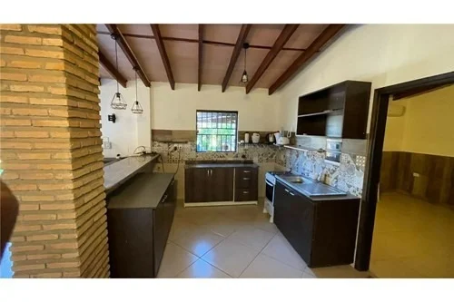 CASA DE VERANO EN BARRIO CERRADO MIRALAGO ????☀️ Hermosa casa de verano estilo rústico, ubicada en el exclusivo barrio cerrado Miralago, rodeada de naturaleza, con seguridad y un entorno súper familiar. Situada sobre la avenida principal, en zona elevada, con vista al este y amaneceres increíbles. ✨ Características destacadas: ???? 95 m² construidos – todo en planta baja ????️ 3 dormitorios (1 en suite) con aire acondicionado ????️ Living y comedor amoblados ???? Cocina equipada con desayunador de granito ???? Baño social + depósito ???? Cerramientos blindex ???? Quincho semi cubierto (50 m²): Cocina equipada Mesa de madera para 16 personas Baño social ???? Piscina de 60.000 litros Cascada, motor y filtros Deck con reposeras y sombrilla de paja ???? Terreno total: 1.379 m² (2 lotes) ???? Estacionamiento semi cubierto para 4 vehículos con portón eléctrico ???? Fibra óptica ???? Cámaras de seguridad internas y externas ???? Expensas: 500.000 gs/mes ???? Agua del barrio: 50.000 gs/mes ???? Condiciones: Escrituración a cargo del comprador Seña del 20% ✨ Ideal para disfrutar en familia, descansar y crear recuerdos inolvidables en un entorno natural y seguro