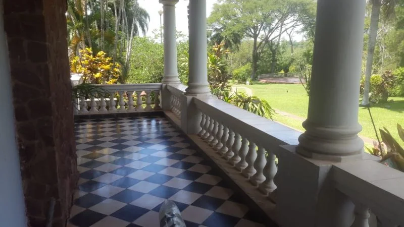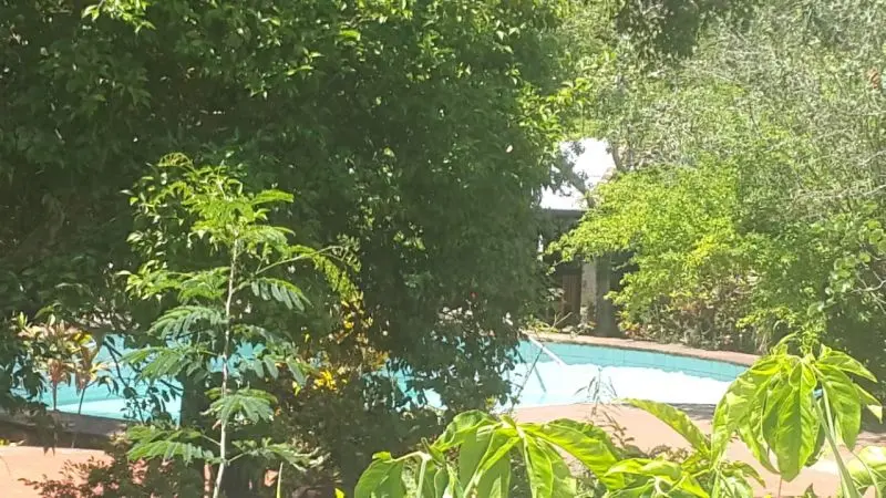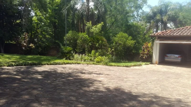 Piscina con escultura y cascada de Herman Guggiari y con capacidad aproximada de 80.000 litros, revestida con azulejos, filtro de agua, caminero y rotonda para reposeras.