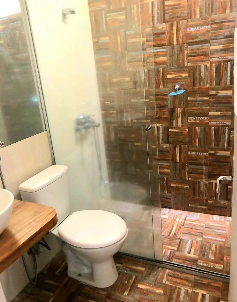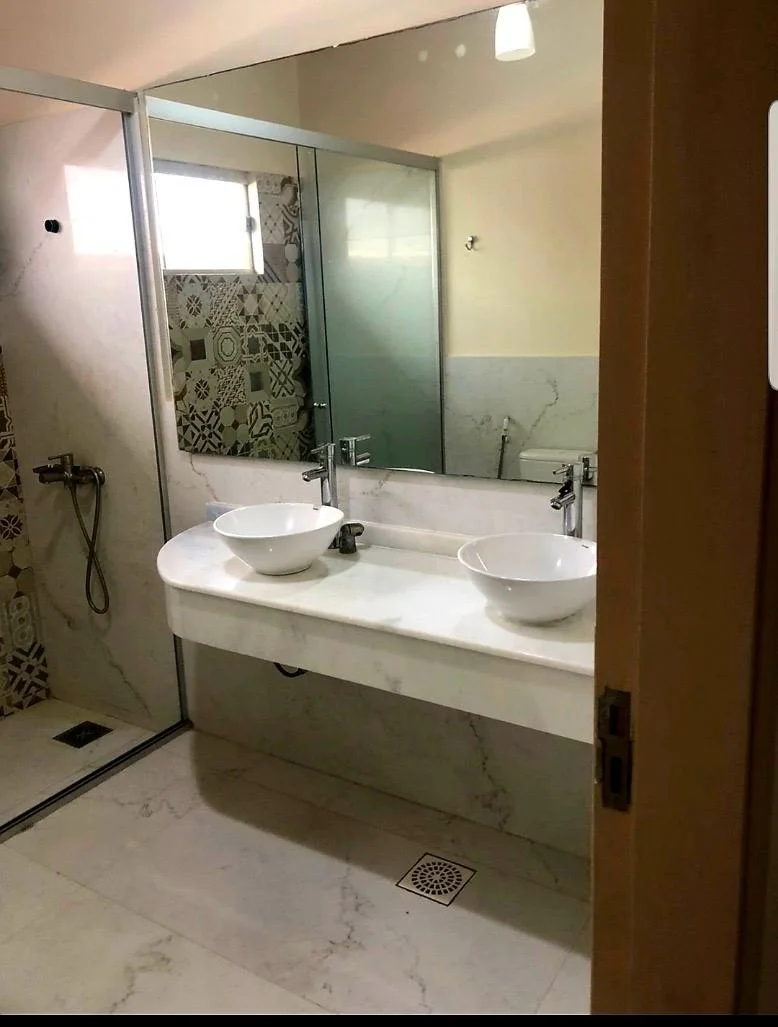 ✅Baño social con mesada de travertino.