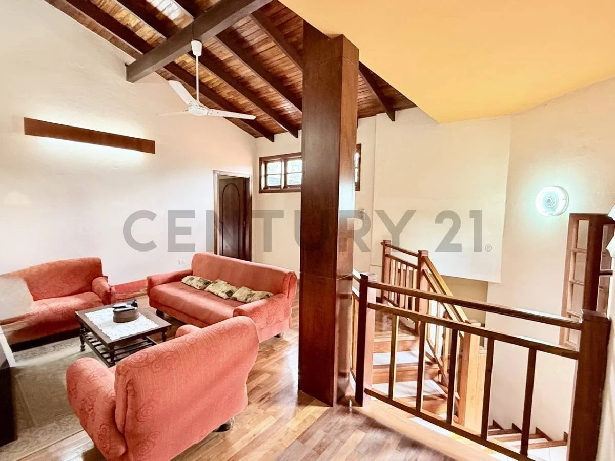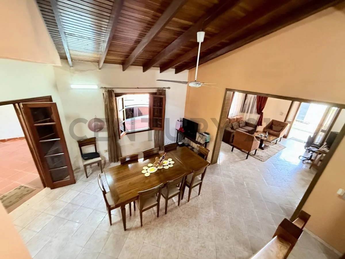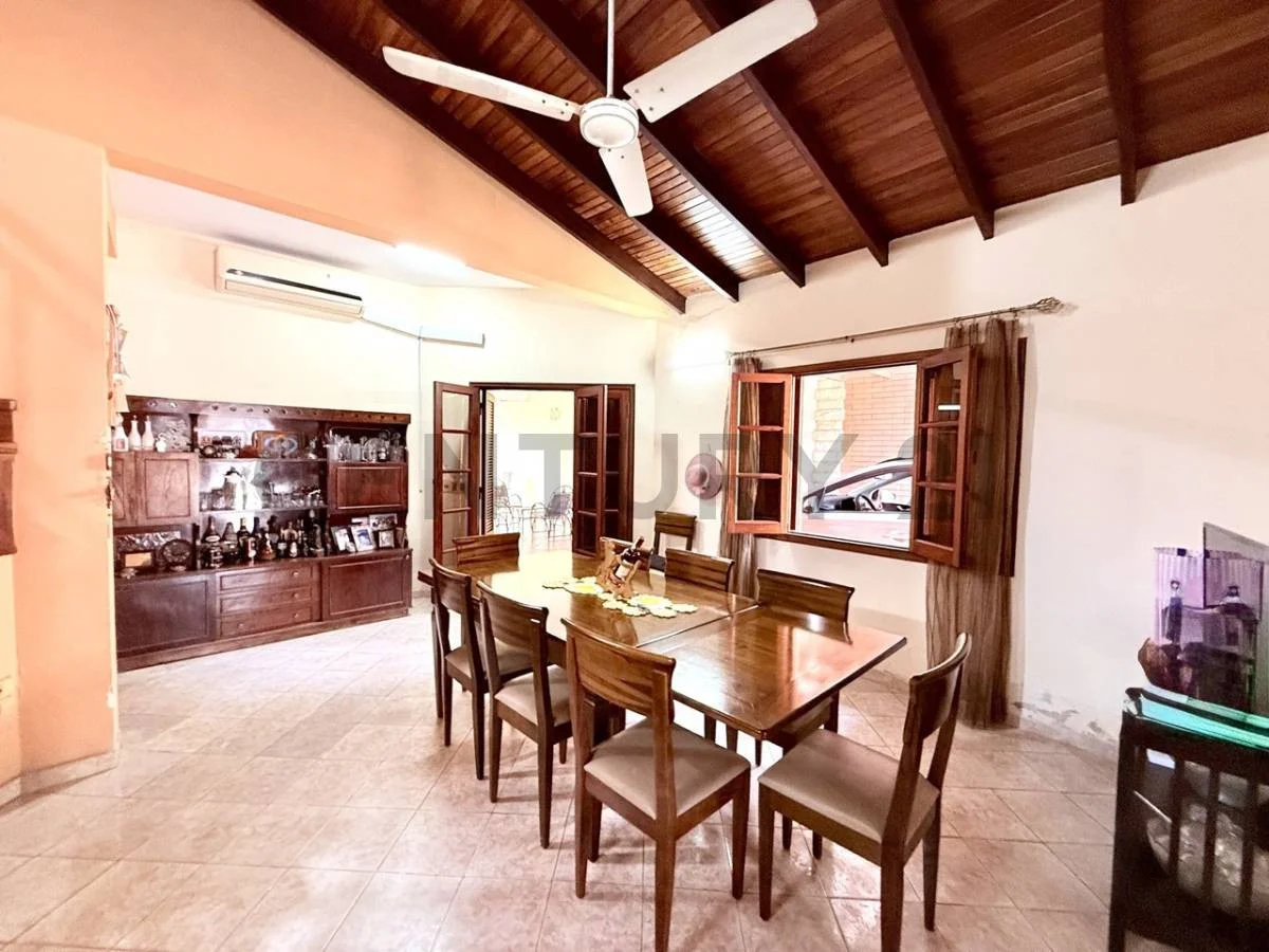 A solo 5 minutos del eje corporativo se encuentra esta residencia lista para ser habitada. Asentada en un terreno de 420 m2 (12x35) y distribuida en dos plantas ; destacándose por los altos techos de machimbre y toda la planta alta con pisos de parquet en excelente estado de conservación, además de ofrecer todo el espacio necesario para una familia que busca amplitud y comodidad.
