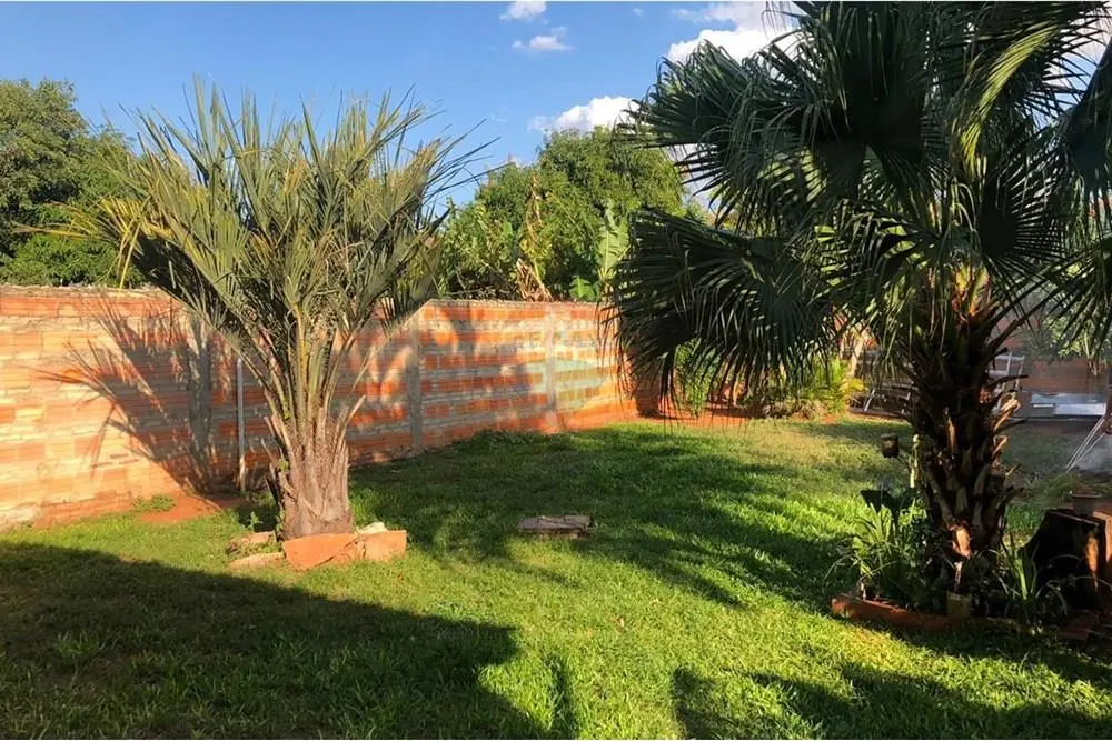 - Superficie con patio delantero y trasero con césped y árboles frutales.