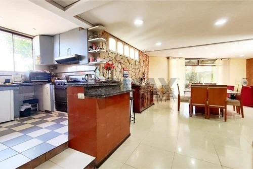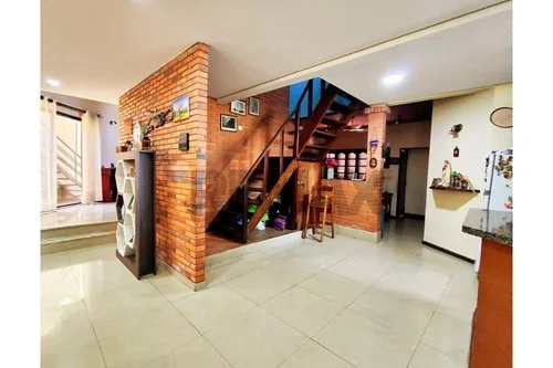 En planta baja, los espacios sociales se integran de forma armoniosa: una elegante sala social con chimenea revestida en granito, un living comedor conectado a una cocina amoblada con desayunador de granito y detalles en piedra, ideales para disfrutar en familia o con invitados. Completan este nivel el baño social, el área de servicio con dormitorio y baño, además de un amplio patio con parrilla equipada y piscina, pensados para el disfrute diario.