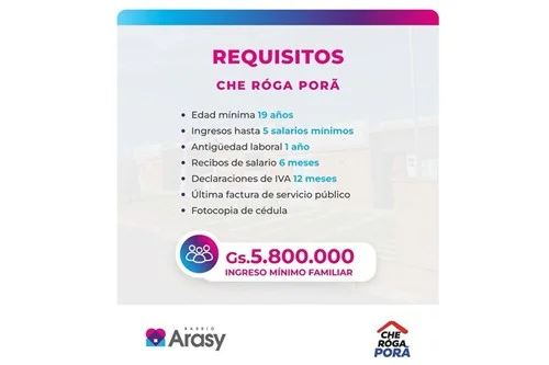 Venta - Casa - Paraguay LUQUE - B° Cerrado Arasy 2 ???? CUOTAS DESDE: ***Gs a 30 años TASA DE 6.5& ???? Precio contado: ***Gs. AHORA CON CHE ROGA PORÄ ???? Ubicación Privilegiada: ????️ A solo 300 metros de la Avenida Las Residentas BARRIO Costa Sosa Luque ???? Cercano al Supermercados, Farmacias, Estaciones de Servicio y diversas opciones de comercios y restaurantes Bº CERRADO ARASY 2 https://maps.app.goo.gl/mNrr1MPXFBdMsVPK7?g_st=aw ???? Distribución de la Casa:68m2 ???? Hall de entrada, sala de estar, comedor y cocina integrados. ????️ 1 dormitorio en suite. ???? 2 dormitorios con baño compartido. ???? Baño social. ???? Lavadero con conexión para lavarropas y espacio para tendedero. ???? Galería con parrilla y lavadero. ???? Amplio patio trasero privado. ???? Estacionamiento para 2 vehículos. ????️ Seguridad privada y portería las 24 horas. ???? Áreas Comunes: ????️ Quincho con parrilla. ????♂️ Piscina. ???? Parque para niños. ???? Cancha multiuso. ???? Seguridad electrónica. Agendá una visita!
