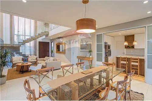 Lujosa residencia ubicada en el corazón del condominio más exclusivo de Paraguay, esta casa redefine el concepto de elegancia y confort teniendo la laguna Crystal Lagoon como su amenitie. Con un diseño arquitectónico contemporáneo que armoniza con el entorno natural, la propiedad ofrece acceso a áreas comunes verdes privadas, gran área deportiva, restaurantes con vista a la laguna artificial de aguas cristalinas. Los amplios ventanales permiten disfrutar de vistas panorámicas, mientras que los espacios interiores, decorados con materiales de alta gama, crean una atmósfera de sofisticación y calidez. Entre sus amenidades se incluyen una piscina infinita, un gimnasio privado, y amplias terrazas que invitan al descanso y la contemplación. Cada detalle ha sido cuidadosamente seleccionado para ofrecer una experiencia de vida inigualable, convirtiendo esta residencia en un verdadero paraíso dentro de la exclusiva comunidad.