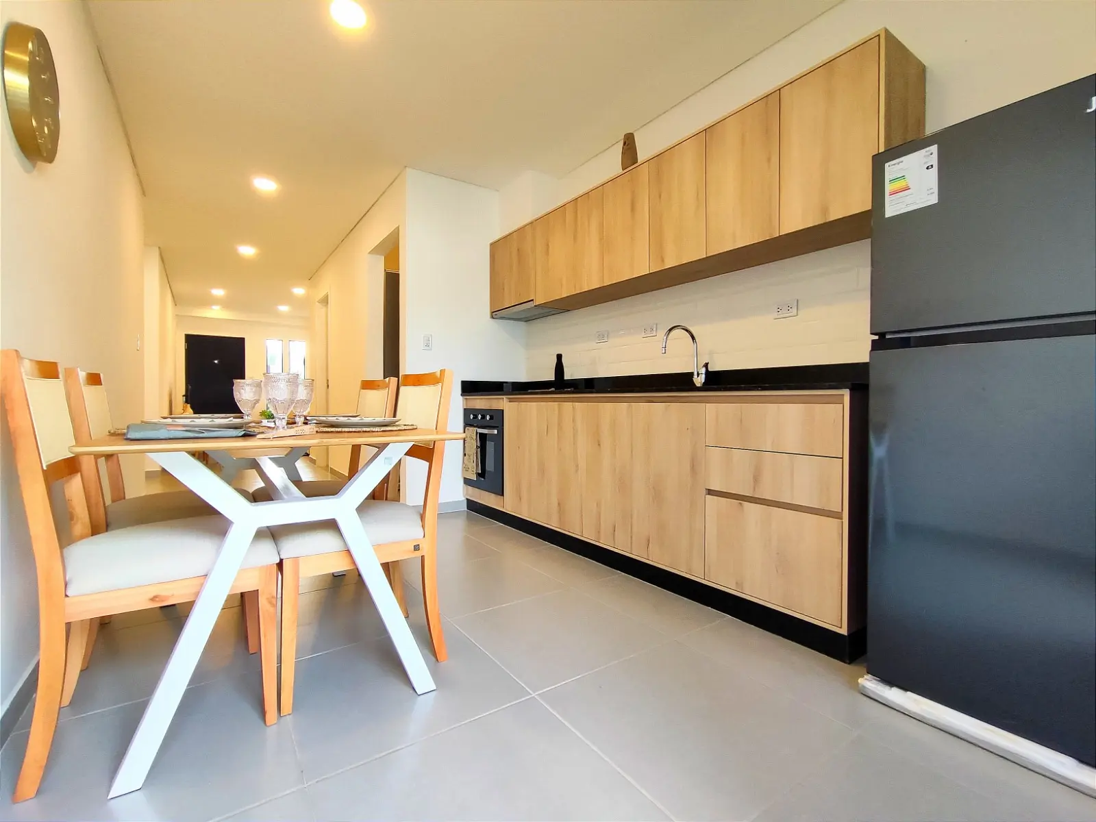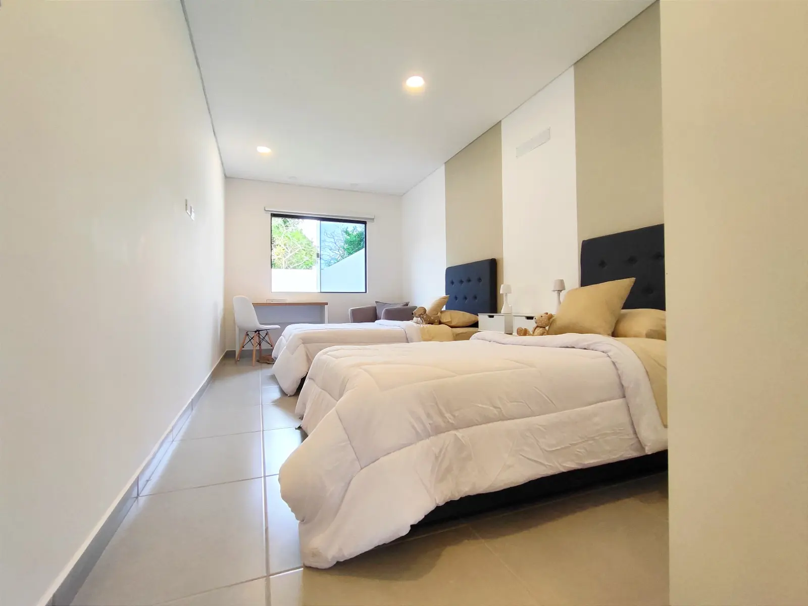 - Acabados Modernos: Piso de porcelanato, paredes con acabado en látex blanco e iluminación LED para un ambiente luminoso y moderno.