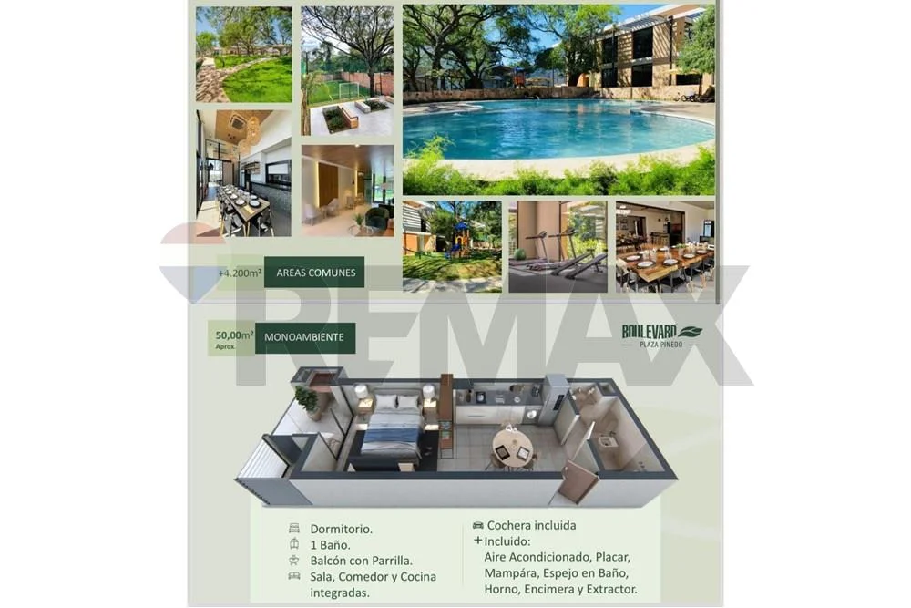 Incluye equipamiento: aire acondicionado, placar, mampara, espejo en baño, horno, encimera y extractor.
