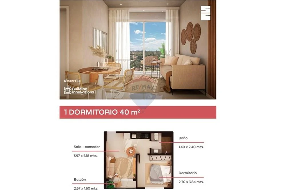 **Unidades de 1 dormitorio 40 m2 desde contado 46.000, financiado hasta 30 meses 52.000