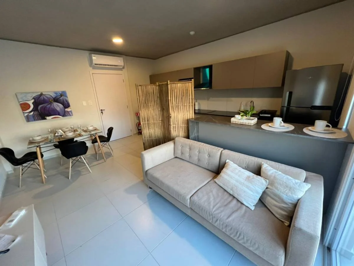 El departamento es nuevo a estrenar y se entrega completamente amoblado y equipado, con muebles y electrodomésticos de primera calidad. Incluye todo lo necesario para mudarse de inmediato, incluso utensilios de cocina y cubiertos.