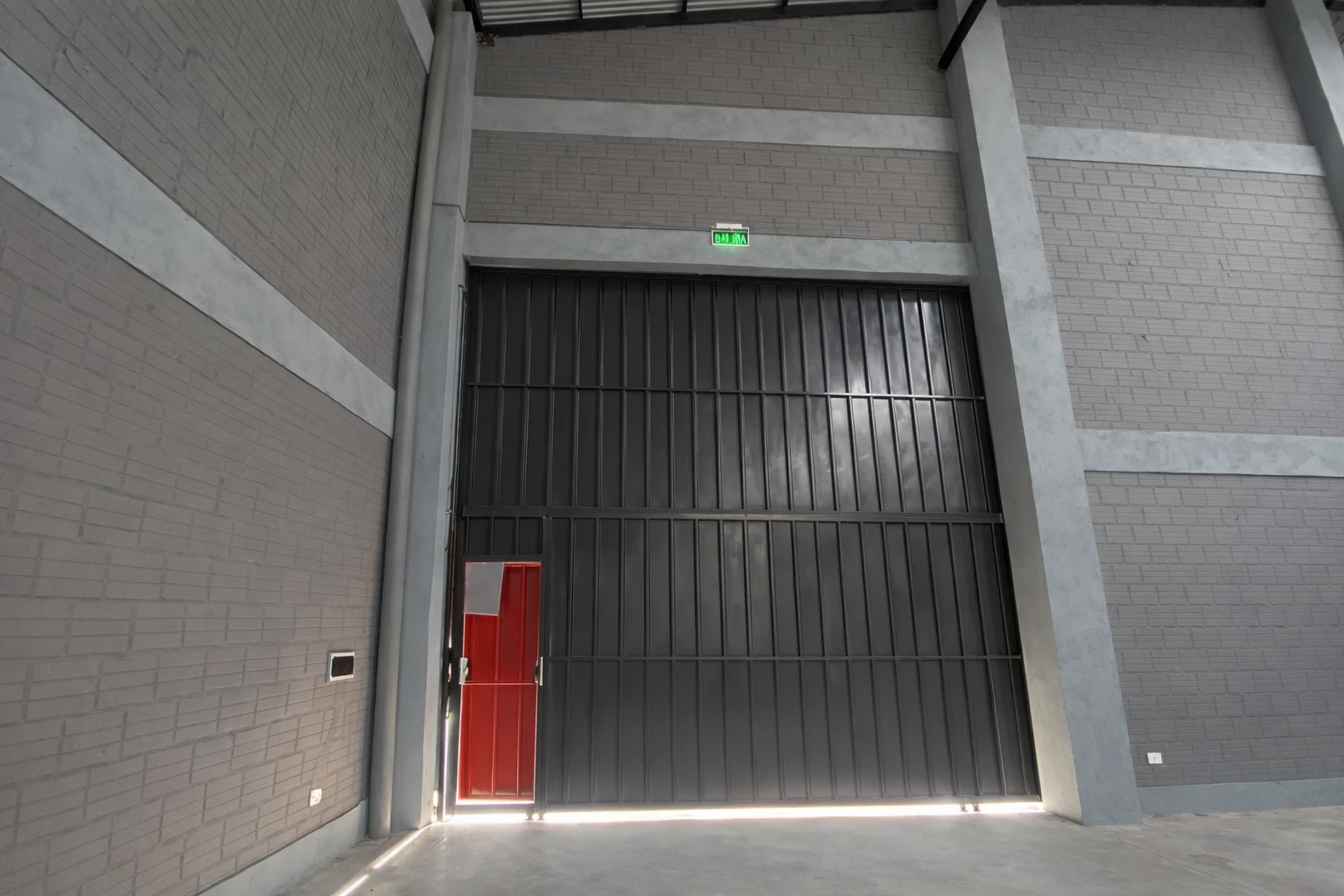Un portón metálico, 5 × 5, con acceso peatonal