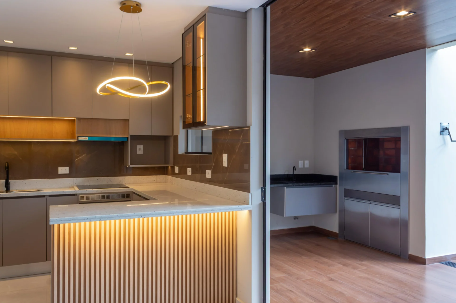 - Cocina integrada con mesadas y equipada con anafe, extractor y horno empotrado