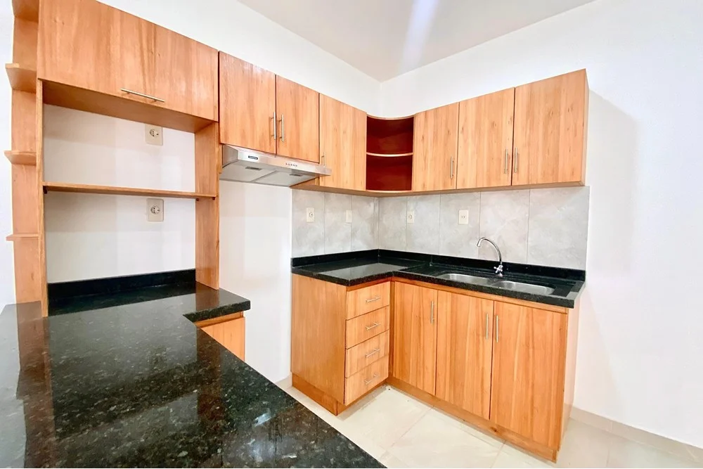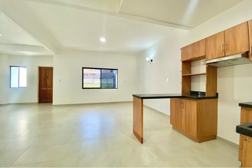 Cocina amoblada con alacenas, isla y extractor