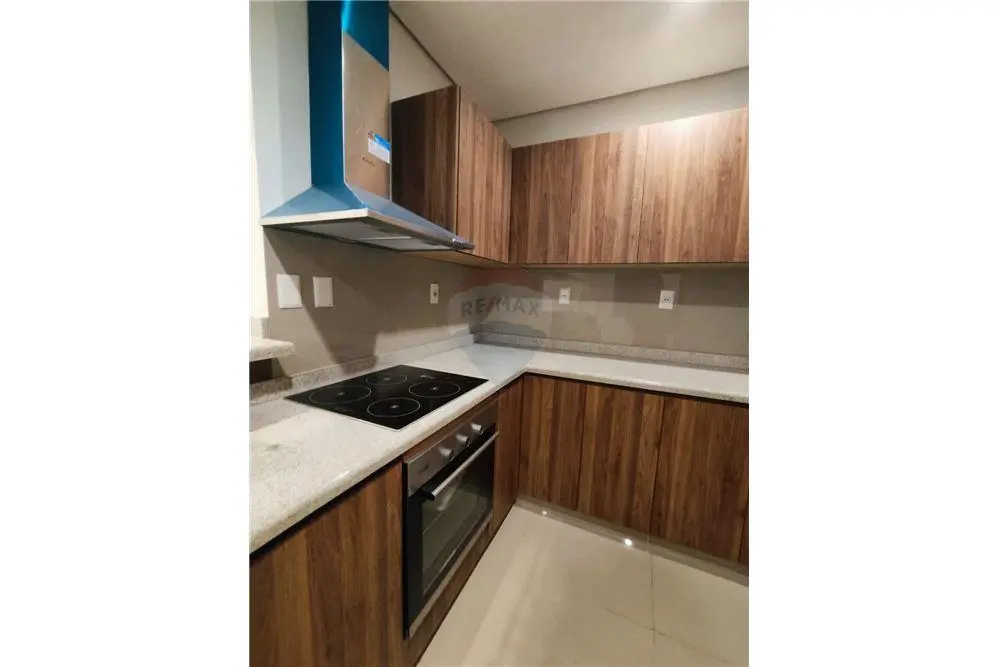 Cocina amoblada con horno y anafe y estractor, con desayunador, mesada de granito.