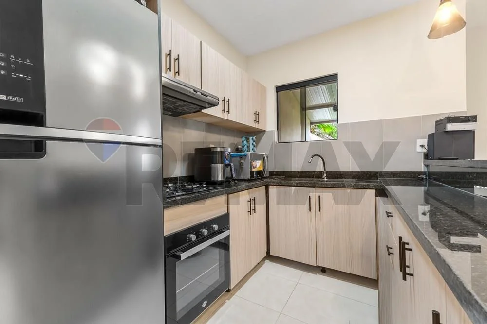Cocina amoblada con mesada de granito
