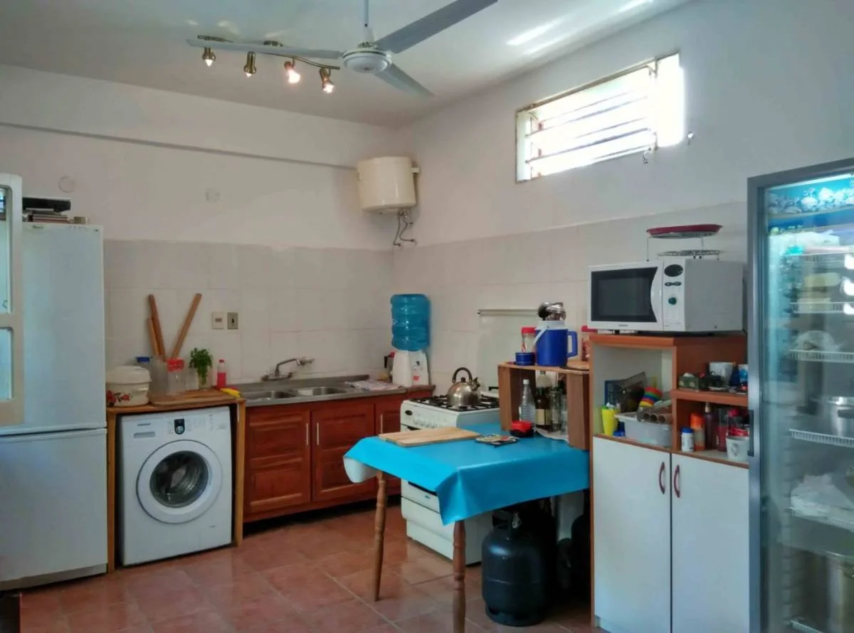 Sala, baño social, cocina comedor, 1 habitación en suite, amplia galería con parrilla.