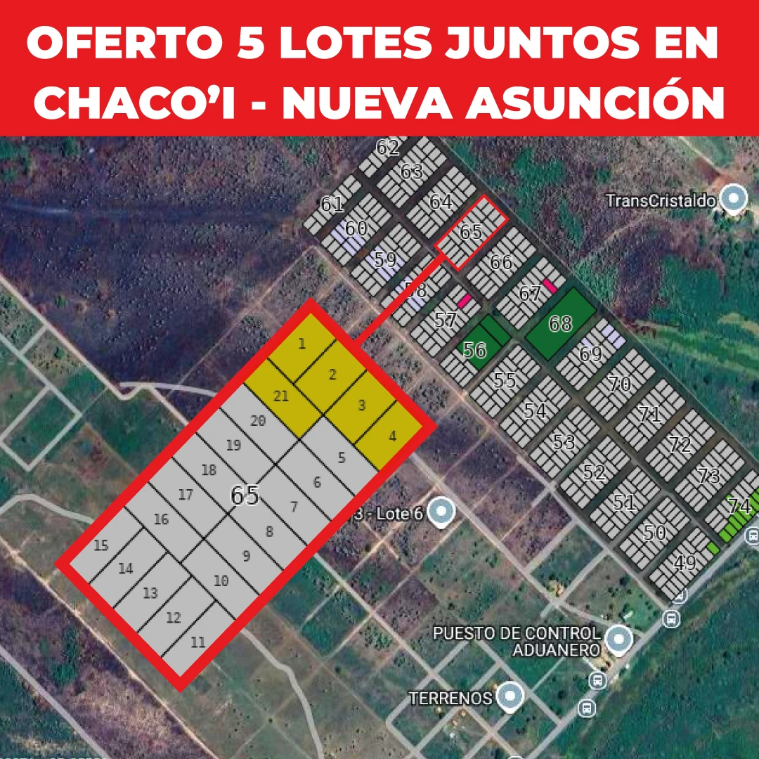 OFERTO 5 LOTES JUNTOS EN CHACO'I - NUEVA ASUNCIÓN