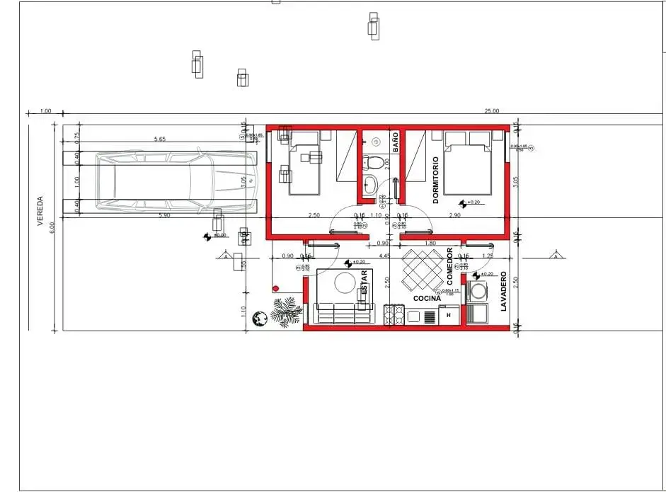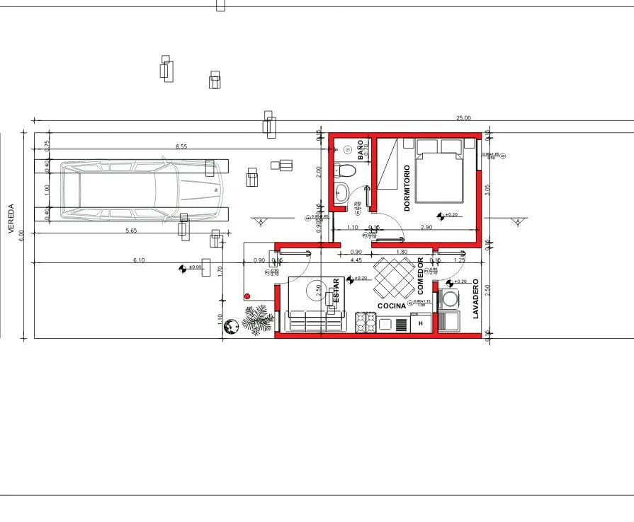 Terreno de 6x25 m2.