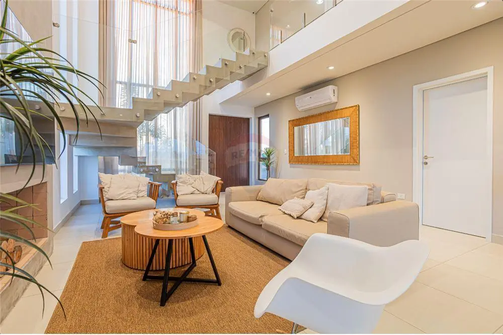 Lujosa residencia ubicada en el corazón del condominio más exclusivo de Paraguay, esta casa redefine el concepto de elegancia y confort teniendo la laguna Crystal Lagoon como su amenitie. Con un diseño arquitectónico contemporáneo que armoniza con el entorno natural, la propiedad ofrece acceso a areas comunes verdes privadas, gran area deportiva, restaurantes con vista a la laguna artificial de aguas cristalinas. Los amplios ventanales permiten disfrutar de vistas panorámicas, mientras que los espacios interiores, decorados con materiales de alta gama, crean una atmósfera de sofisticación y calidez. Entre sus amenidades se incluyen una piscina infinita, un gimnasio privado, y amplias terrazas que invitan al descanso y la contemplación. Cada detalle ha sido cuidadosamente seleccionado para ofrecer una experiencia de vida inigualable, convirtiendo esta residencia en un verdadero paraíso dentro de la exclusiva comunidad.
