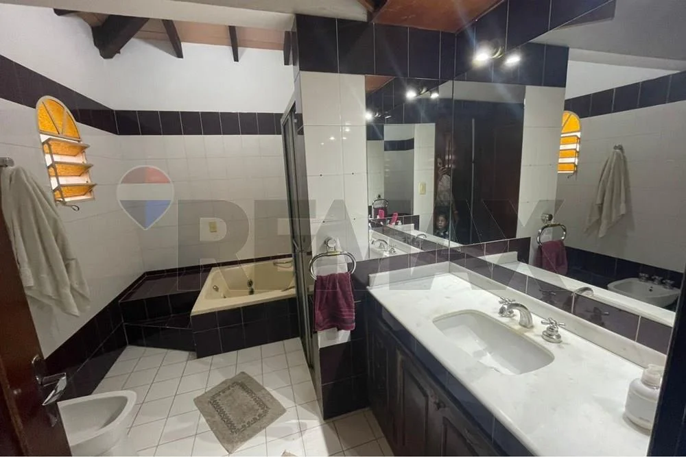 Amplia y elegante residencia ubicada en Barrio Tres Bocas, Villa Elisa, sobre calle empedrada y a pocos metros de importantes avenidas, con rápido acceso al área metropolitana.