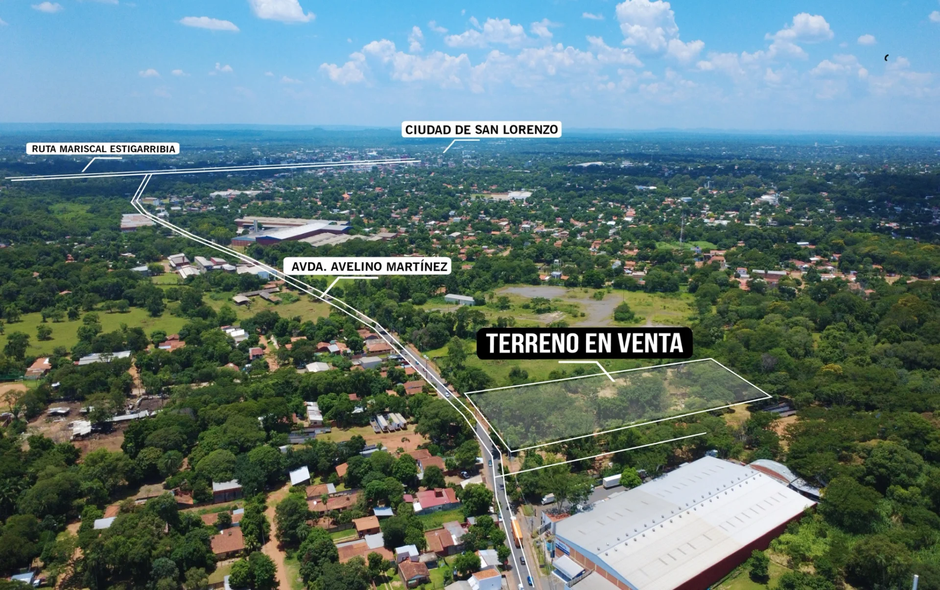 En venta terreno estratégico con 58,5 metros de frente sobre la Avenida Avelino Martínez, una de las arterias más operativas de San Lorenzo para actividades logísticas e industriales.