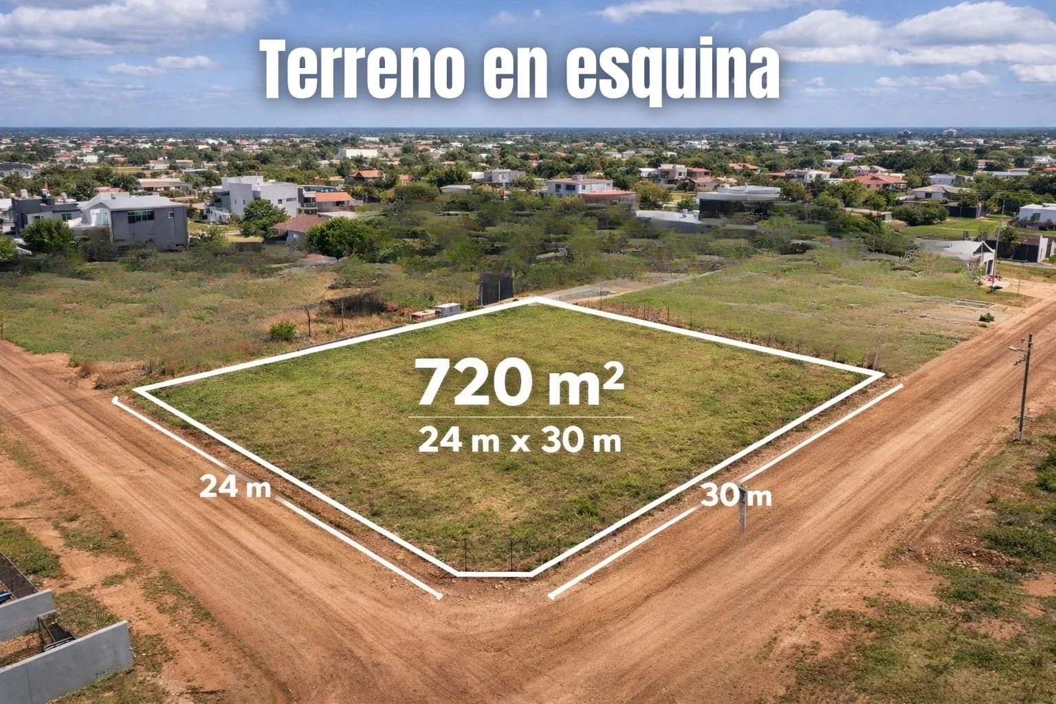 Se ofrece terreno en esquina de 720 m² (24 x 30 m),