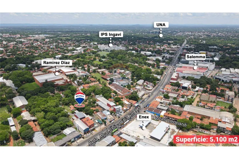TERRENO DE 5.100 M2 EN FERNANDO DE LA MORA sobre RUTA MCAL ESTIGARRIBIA KM 9