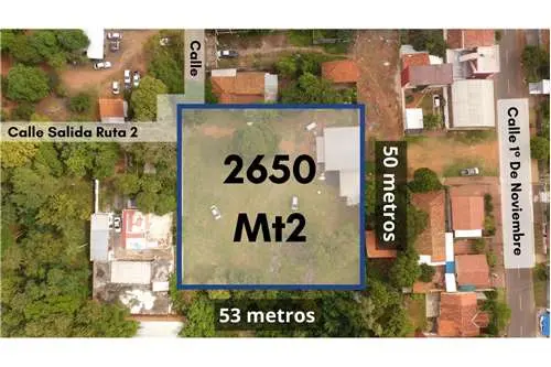 Atención inversionistas!! Amplio terreno amurallado con excelente ubicación, con dimensiones generosas y en una zona en constante desarrollo y totalmente poblada, se encuentra sobre calle empedrada en la ciudad de Capiatá Ruta 2 km18 y 1/2 a tan solo 100 metros de la Ruta Principal N°2 y a 6 min. de Fortis Aratiri. Ideal para Barrio cerrado, Construcción de Galpones para renta, uso industrial. Es para todo uso por su tamaño y doble acceso de entrada. Dimensiones; 50x53 Superficie total: 2.650m2 Inversión: Gs. 995.000.000 Link de Ubicación: https://www.google.com/maps?q=-25.347843170166016,-57.45756912231445&z=17&hl=es Se aceptan propiedad de interés como parte de pago! Documentos a transferir! Agendá una visita con tu Agente Re/max de Confianza **0981-135311**24A
