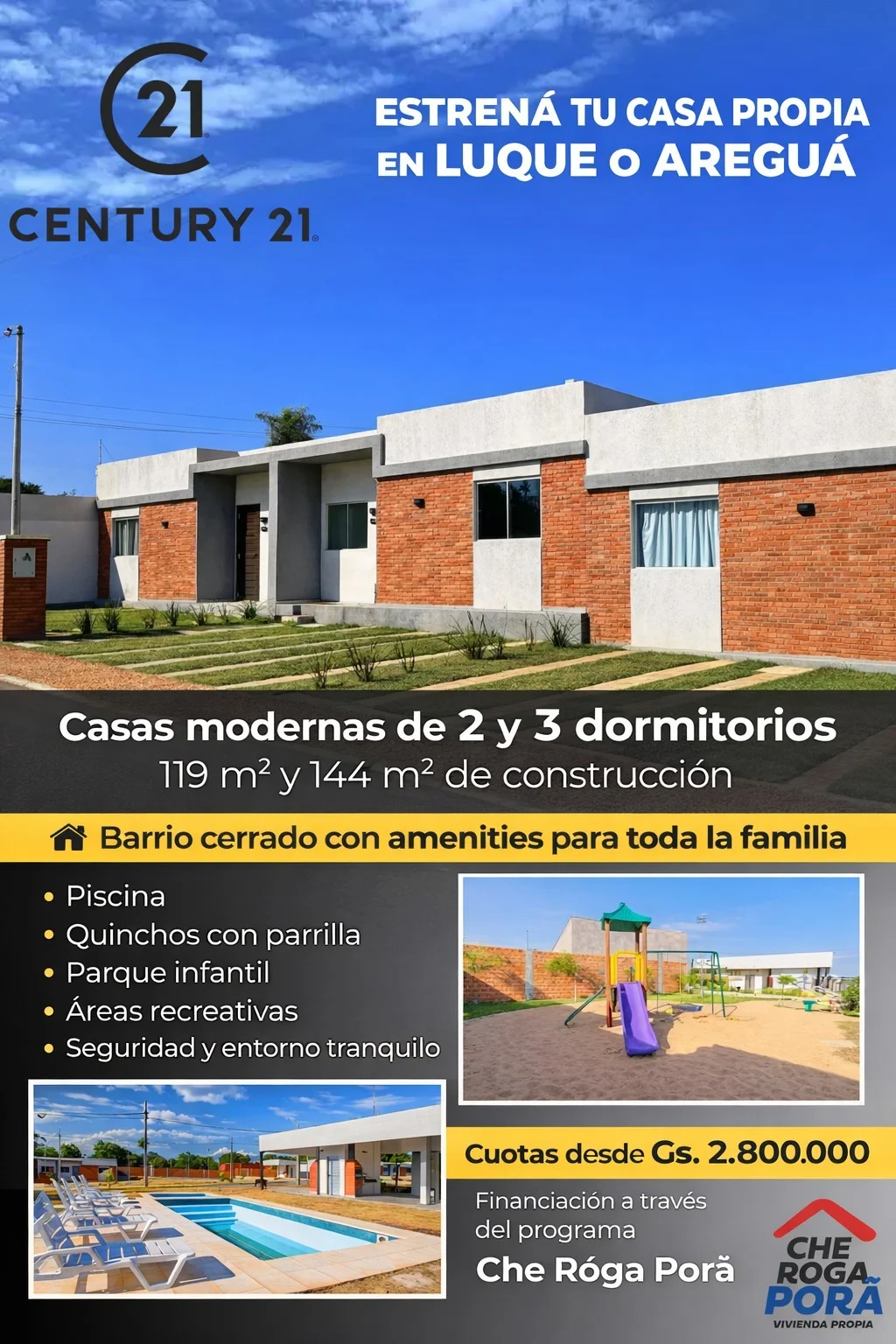 Casas modernas de 2 y 3 dormitorios, con excelente distribución y espacios cómodos.