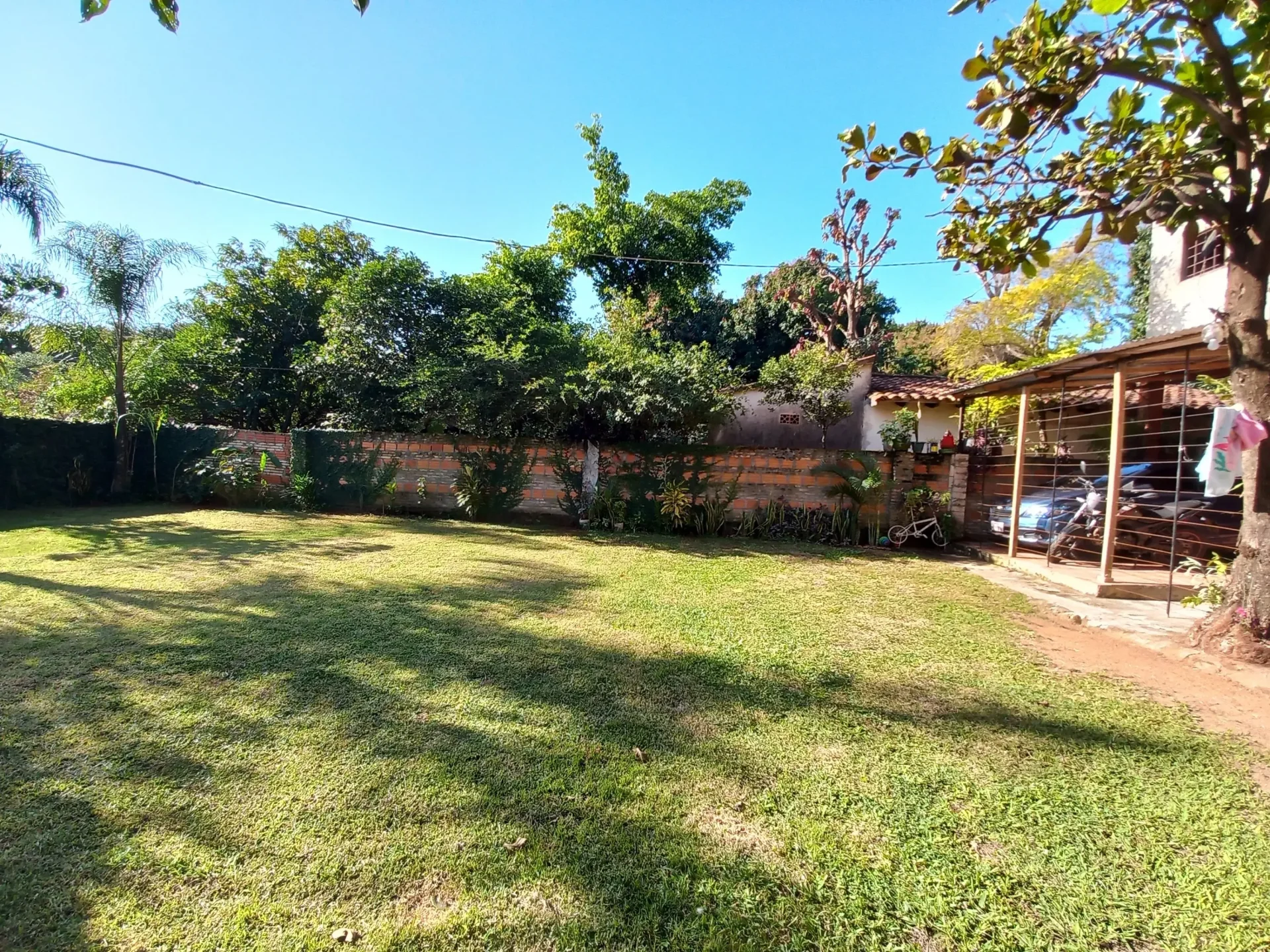 Patio trasero amplio y empastado