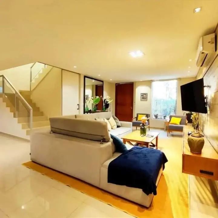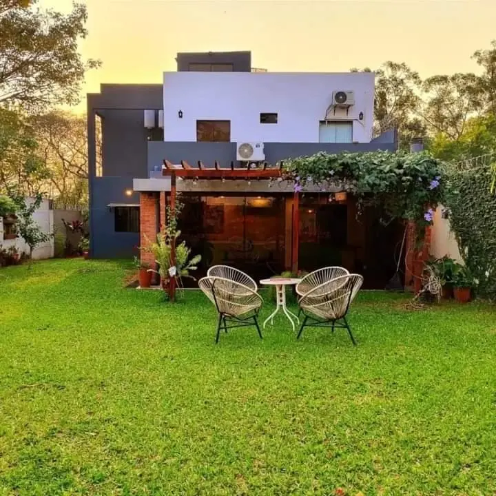 ????️Planta Baja:• Estacionamiento para 4 vehículos (2 techados).• Pequeño jardín frontal.• Pasillo lateral con acceso a la parte trasera.• Living.• Pequeño depósito debajo de la escalera.• Comedor.• Cocina amoblada.• Espacio para oficina u otro depósito.• Baño social.• Quincho con parrilla.• Amplio patio trasero empastado.