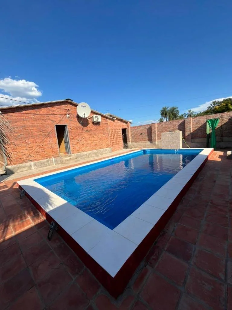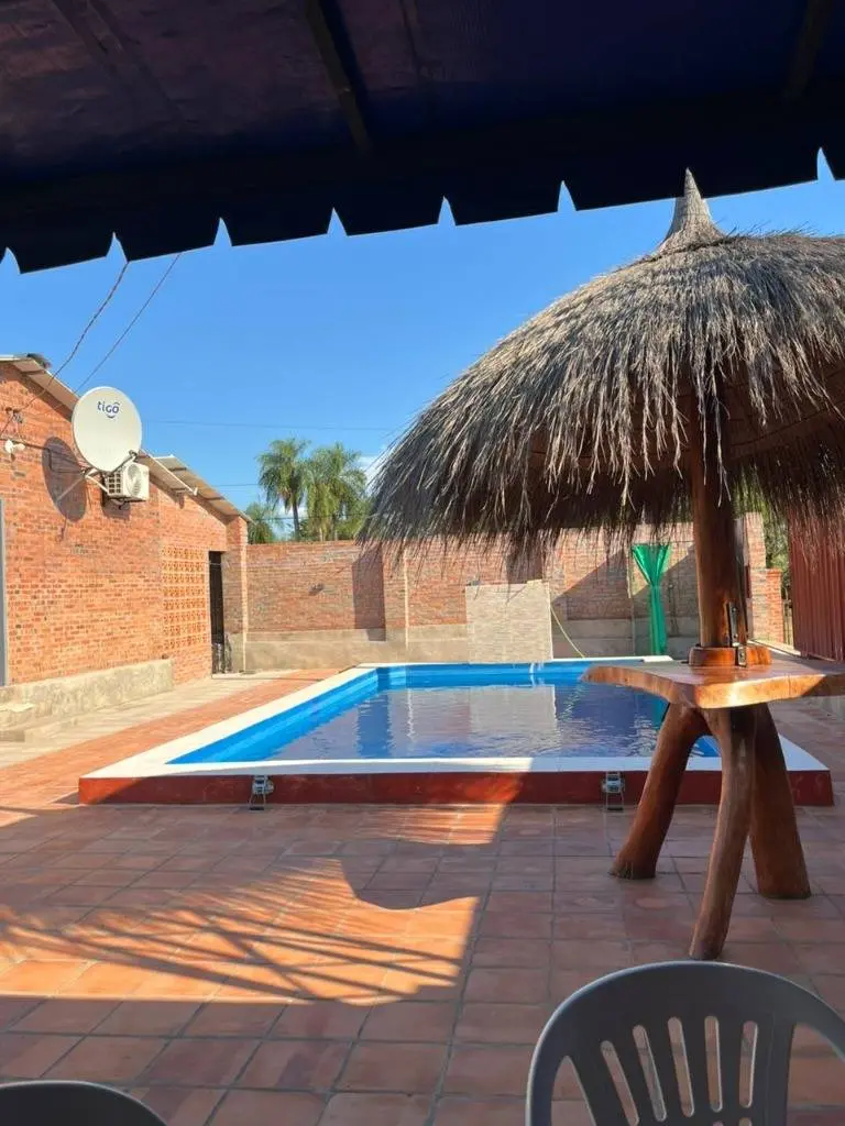 * Quincho Tradicional: Espacioso quincho con techo de paja, equipado con una mesa de madera maciza de gran porte.