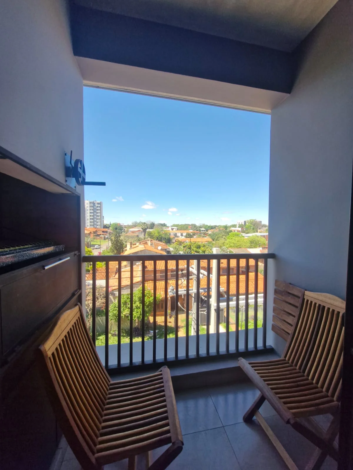 Balcón con parrilla.
