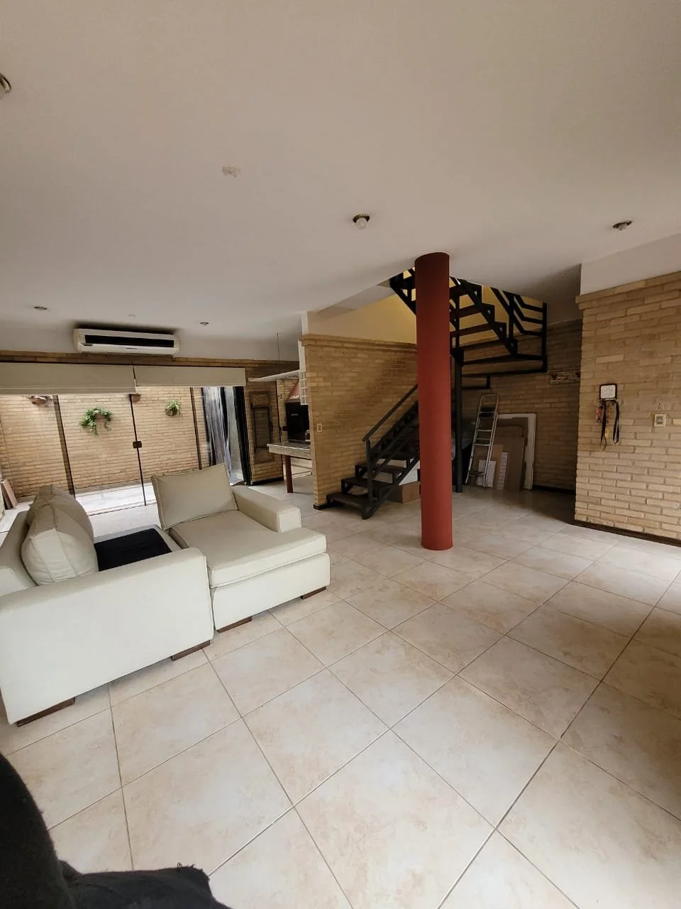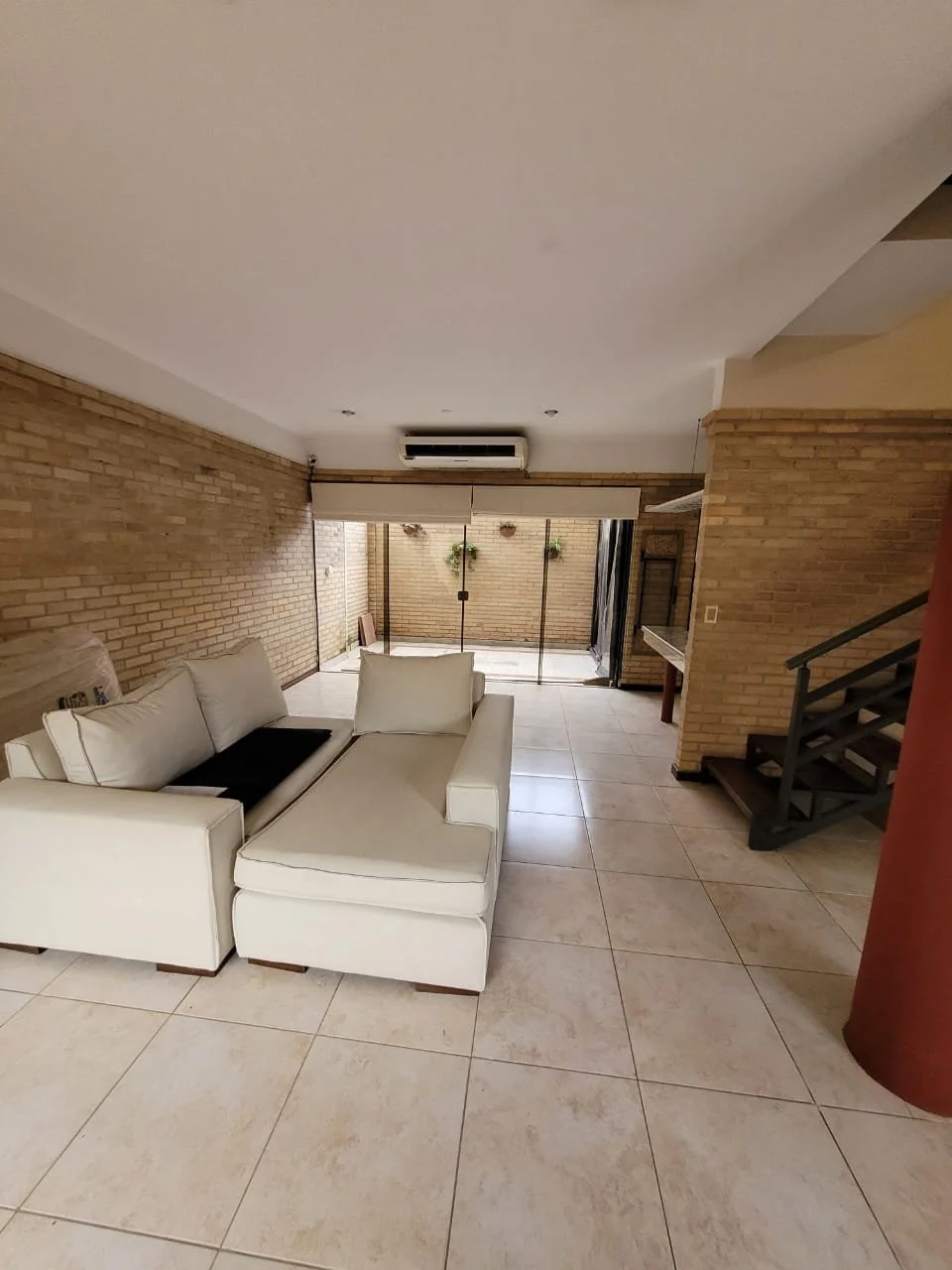 Acogedora sala de estar con gran ventanal al frente, que inunda el espacio con luz natural.