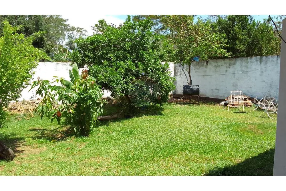 ???? Patio trasero empastado y árboles frutales.