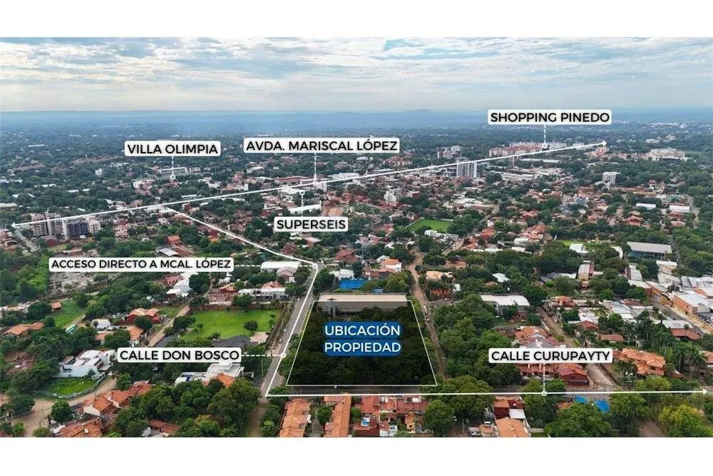 La propiedad está situada en Fernando de la Mora, Zona Norte, y está compuesta por un conjunto de 20 lotes de terrenos urbanos, colindantes entre sí, que en conjunto forman una manzana completa. Dentro de esta área, se han construido dos bloques de edificios tipo Galpón Industrial y un bloque administrativo, proporcionando una infraestructura ideal para actividades comerciales e industriales.