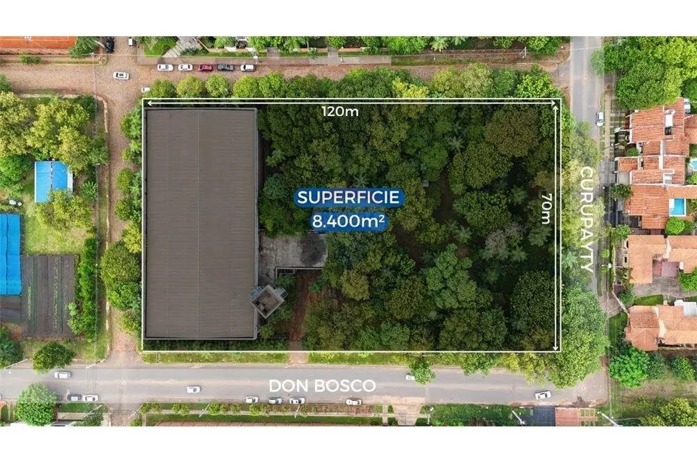 La superficie total del terreno es de 8.400 metros cuadrados, de los cuales 2.840 metros cuadrados están edificados. Este amplio espacio ofrece una excelente oportunidad para desarrollar diversas actividades empresariales, con la ventaja de contar con una ubicación estratégica en una zona urbana.