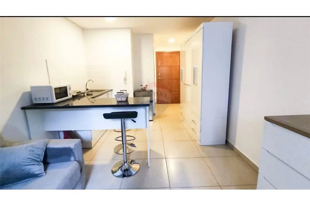 Al ingresar al monoambiente, te recibirán un ambiente principal multifuncional que combina sala de estar, comedor y dormitorio en un diseño integrado y acogedor. Grandes ventanas proporcionan una excelente iluminación natural y vistas agradablemente abiertas, añadiendo luminosidad y amplitud al espacio.