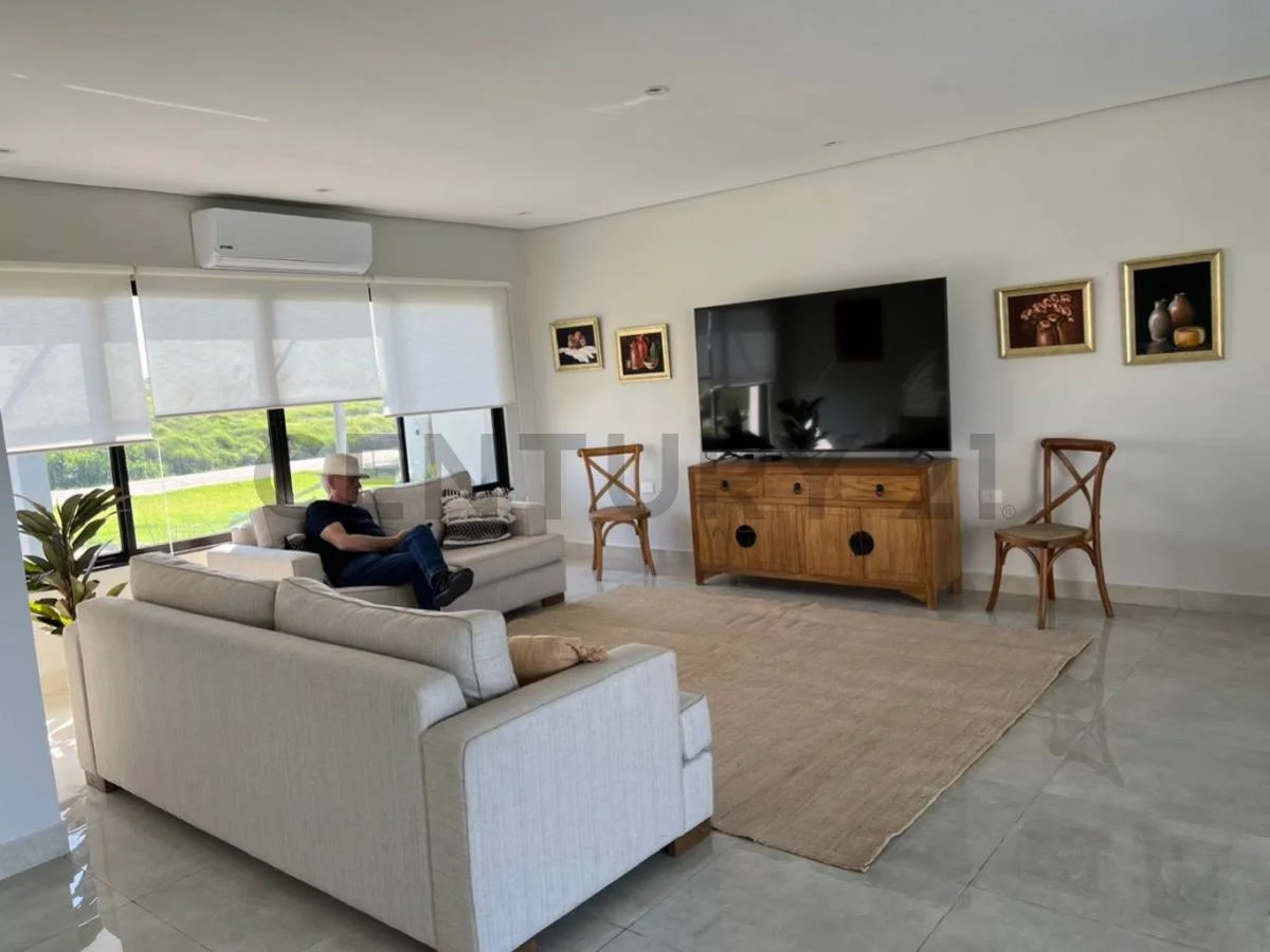 La misma cuenta con un doble living (living social y estar diario) y un amplio comedor integrado con parrilla de acero inoxidable.