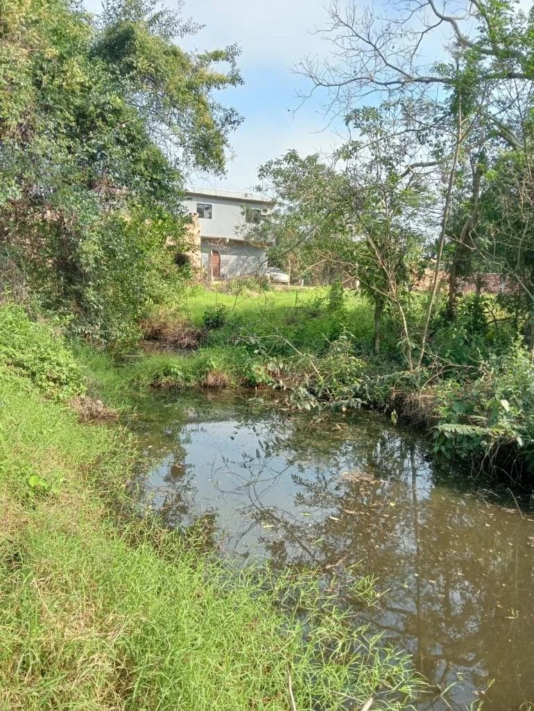 Terreno nivelado, con árboles autóctonos y dos pequeños estanques ideales para piscicultura o aprovechamiento del agua.